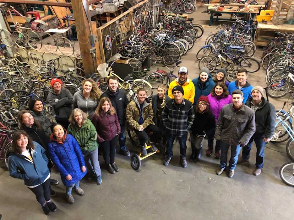 The header image shows the Submittable team volunteering at Moon Randolph Homestead and the thumbnail was taken on a volunteer day at Free Cycles Missoula.